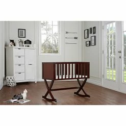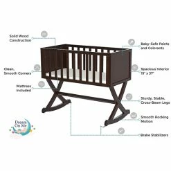 - Incorporates straight lines, a solid side panel with a x-cross base which allows parents to gently rock there babies to sleep