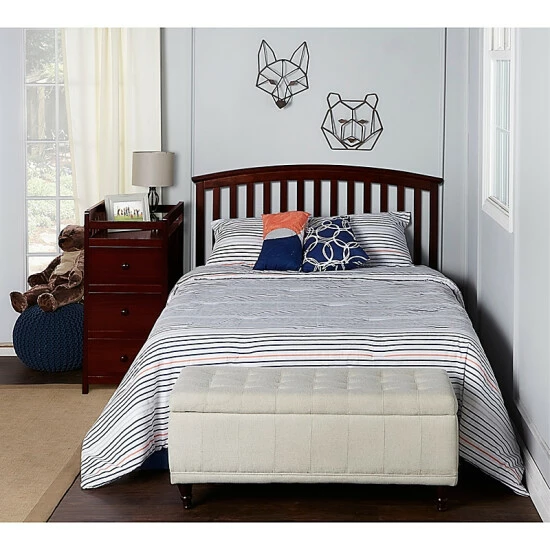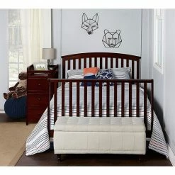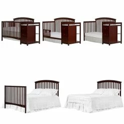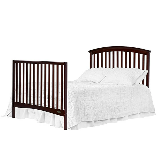 - Converts to toddler bed (conversion kit sold separately), daybed, and full-size bed (safety rails and mattress sold separately)