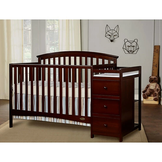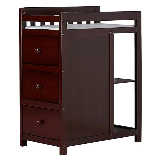- Attached changer features 3 drawers and 2 open shelves for additional storage space (1" Changing Pad Included)