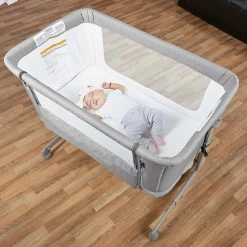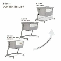 - One side can be opened and used against an adult bed to create a bedside sleeper