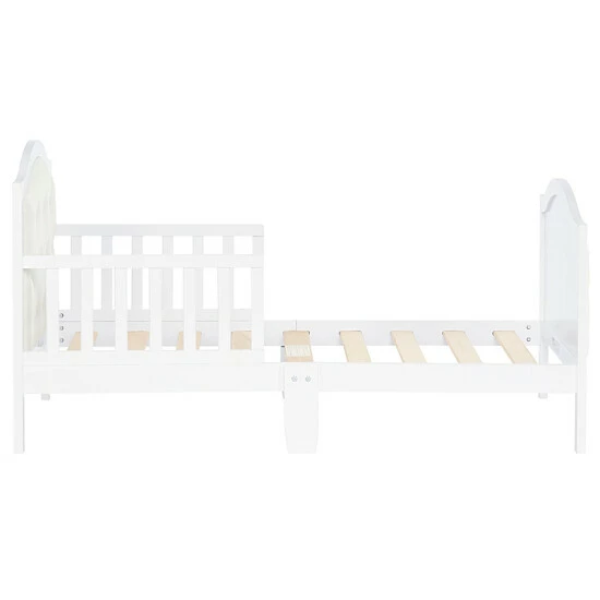 - Features a non-toxic faux leather fabric on the footboard and headboard